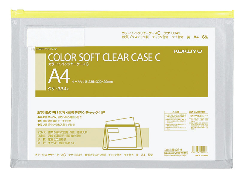 カラーソフトクリヤーケースCマチ付A4 クケ-334Y 黄