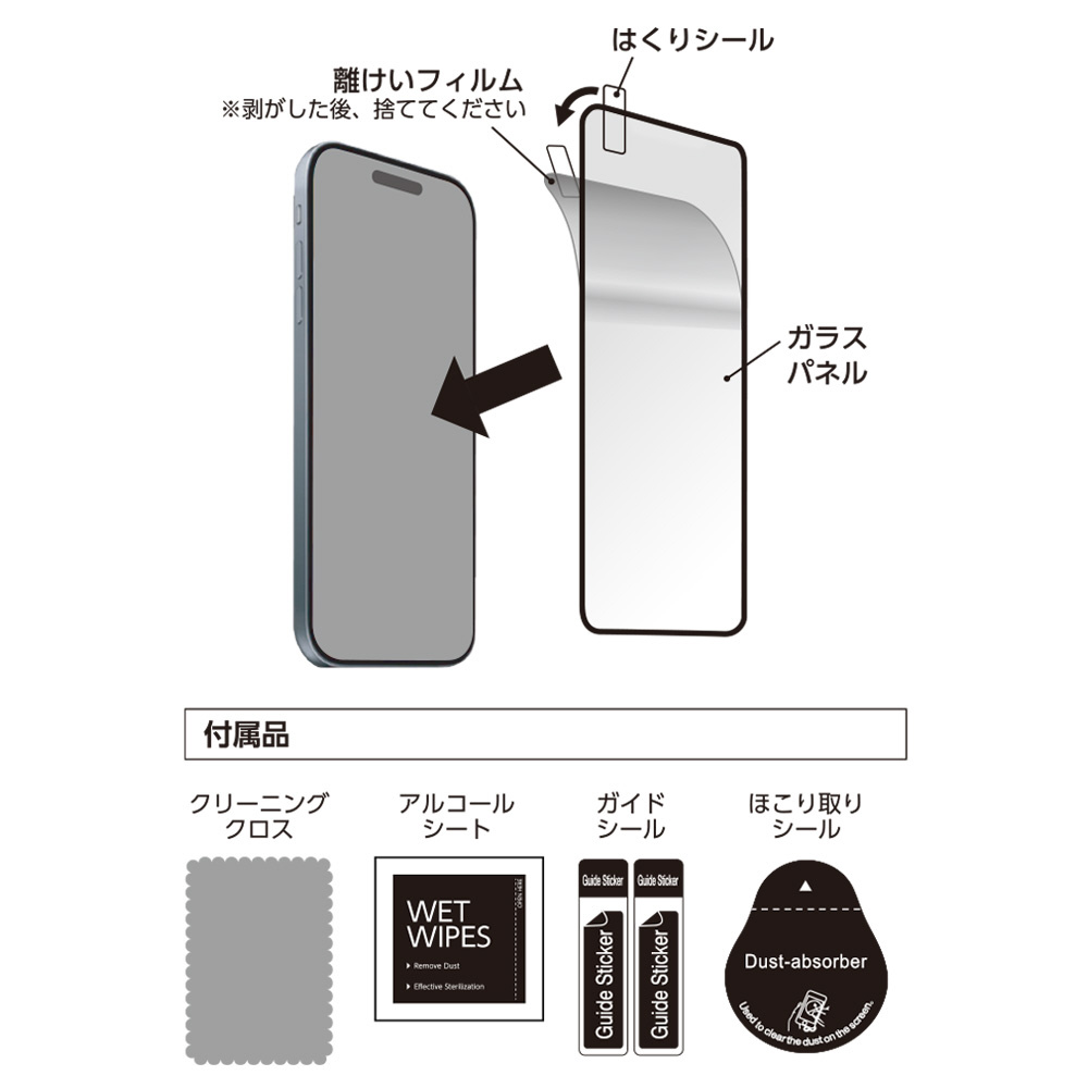 iPhone16用(iPhone15対応) 3D 全面保護 マットタイプ ガラスパネル