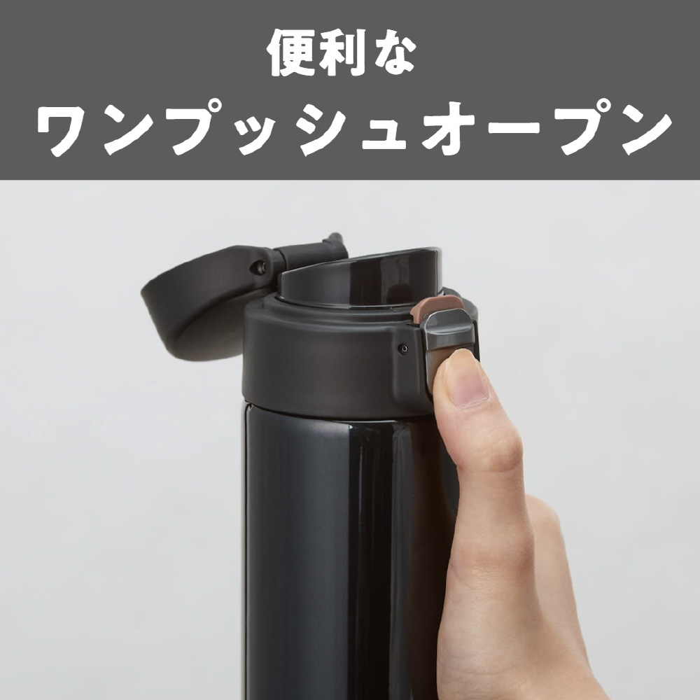 片手でワンプッシュオープン!食洗機対応で清潔、保温・保冷力も高い軽量ステンレスボトル。