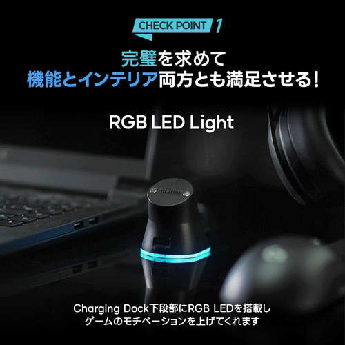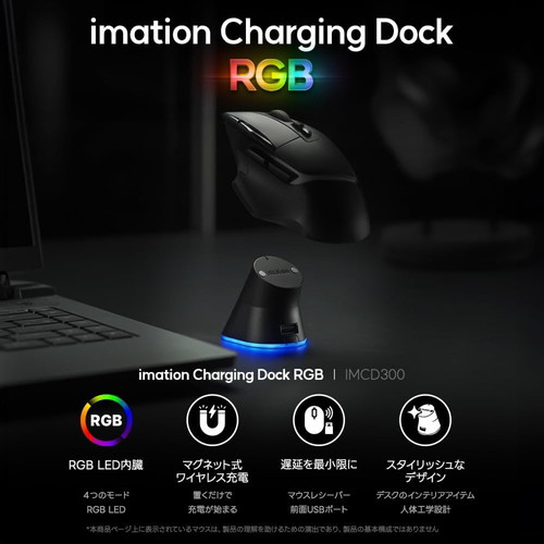 マウスレシーバーを充電ドックに差し込むと、マウスとレシーバー間の距離が短くなり、Delayを最小限に抑えることができます。
