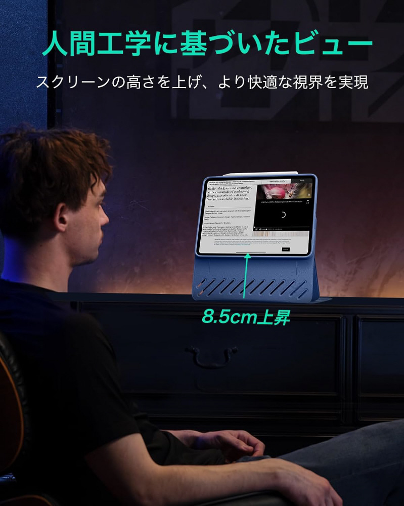 iPad Proをより自然な目線に近い位置で見ることができ、長時間の使用でも快適な姿勢を保つことができます。