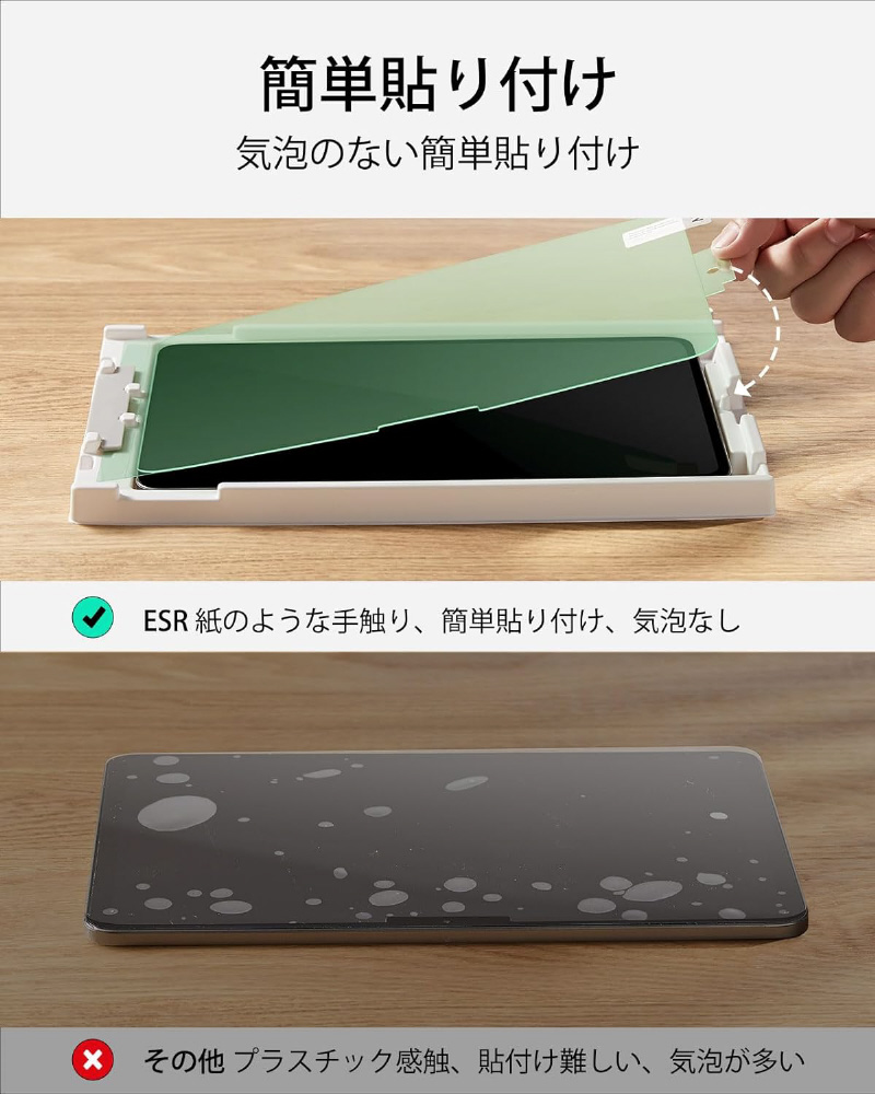 付属の貼付けトレイで、気泡のない簡単な貼付けができます。