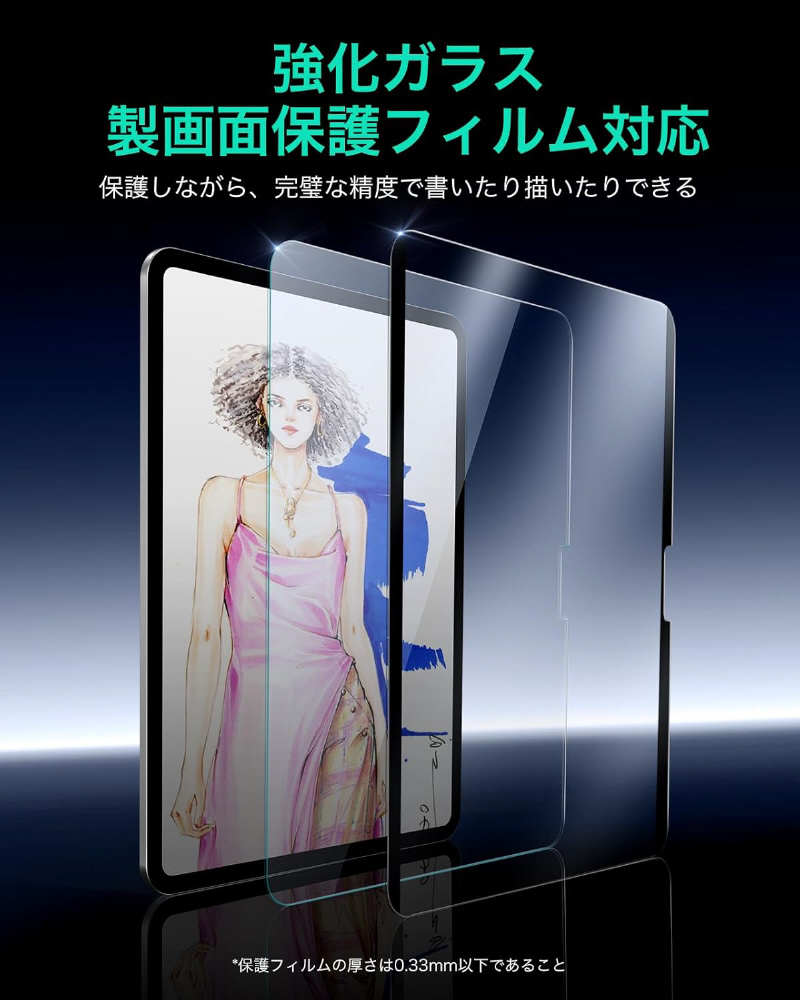 特殊加工された表面は、タブレットをデジタルキャンバスやノートに変えるプロレベルの描画面を提供します。