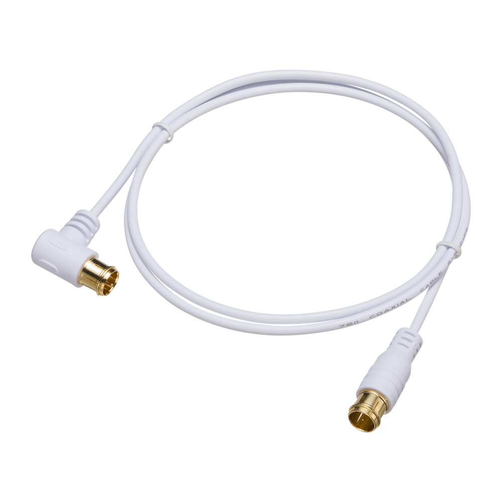 極細アンテナケーブル 1m 白 4K8KBS/CS放送対応 L字型差込プラグ---ストレート型差込プラグ