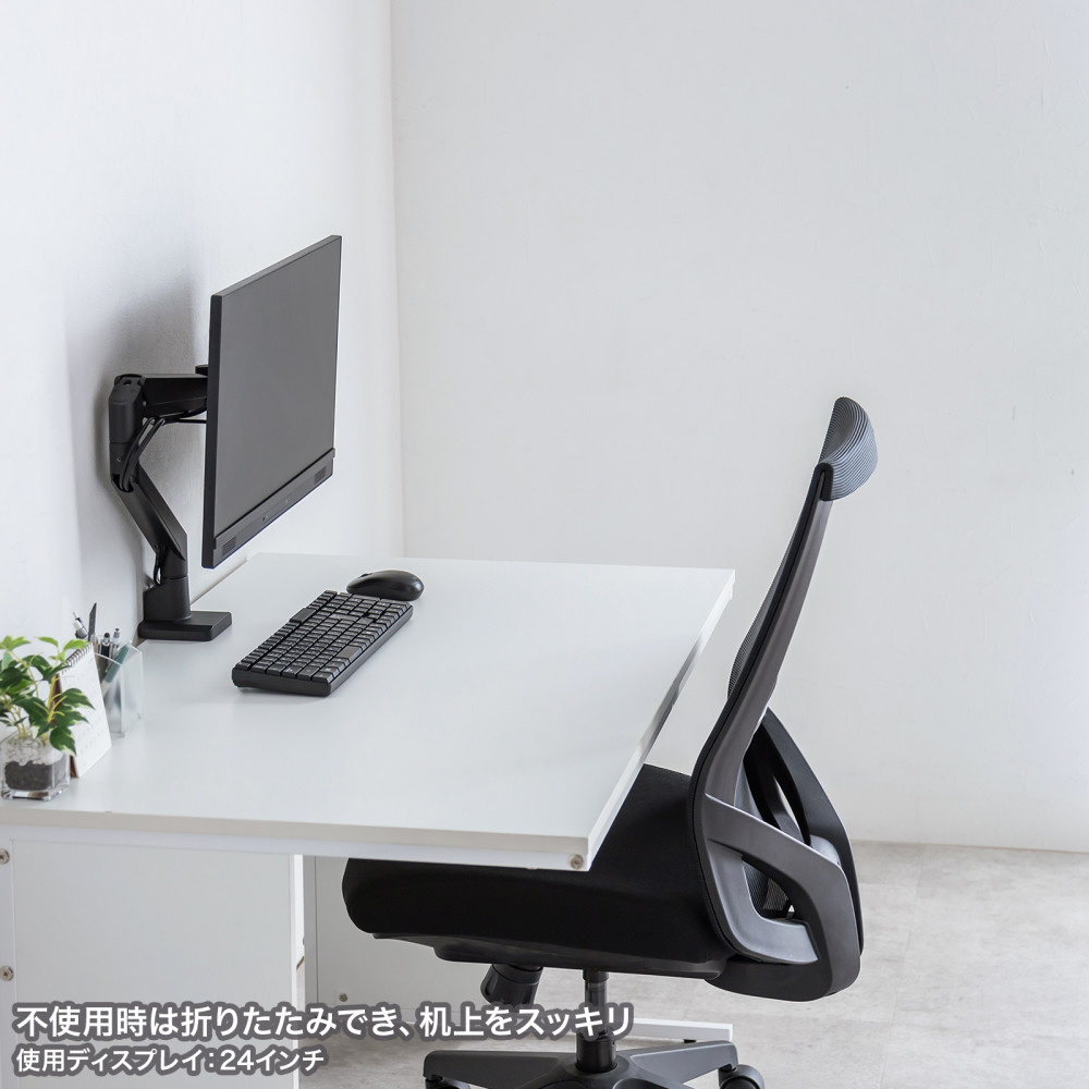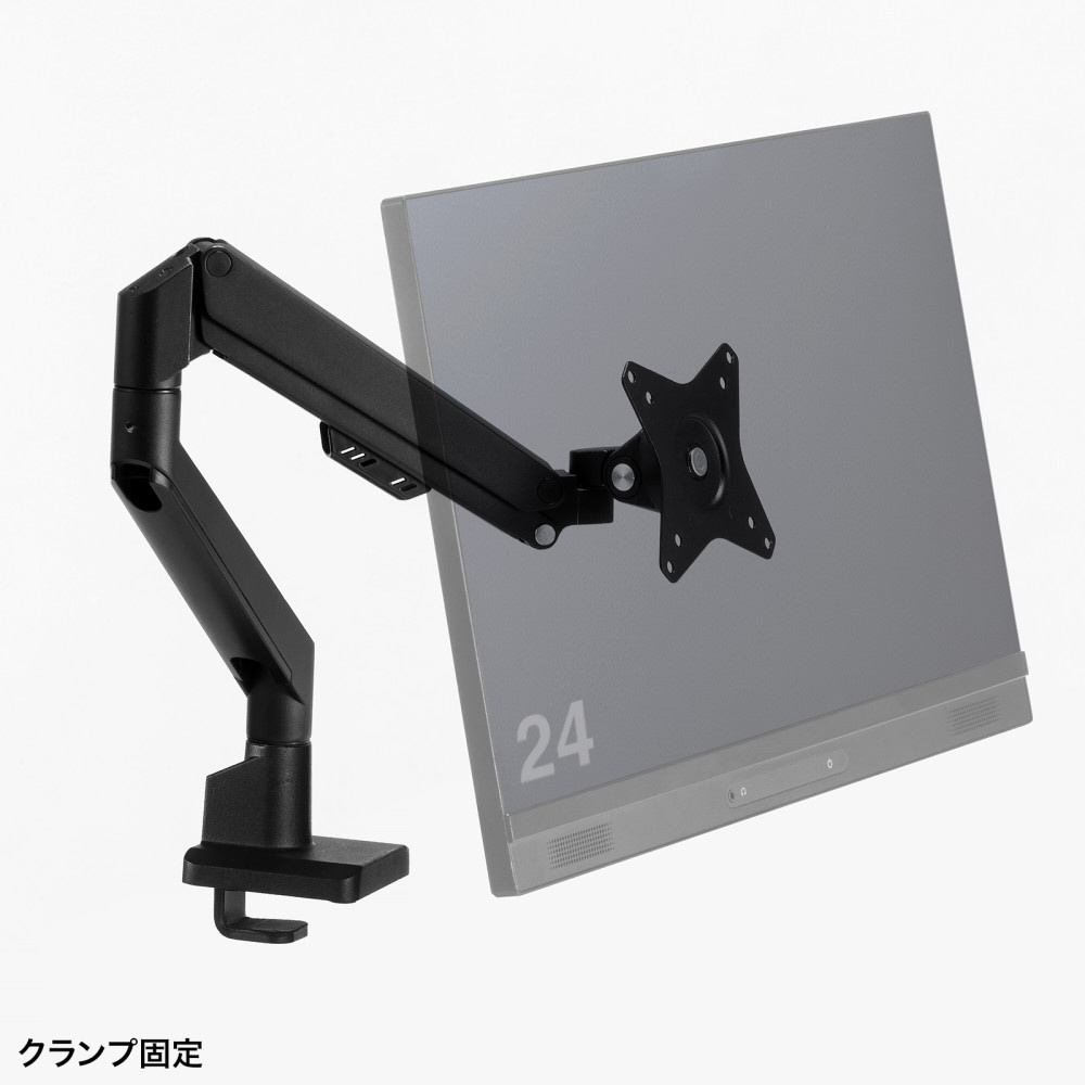 ■17〜32インチサイズのモニターに対応するガススプリング式のシングルモニターアームです。