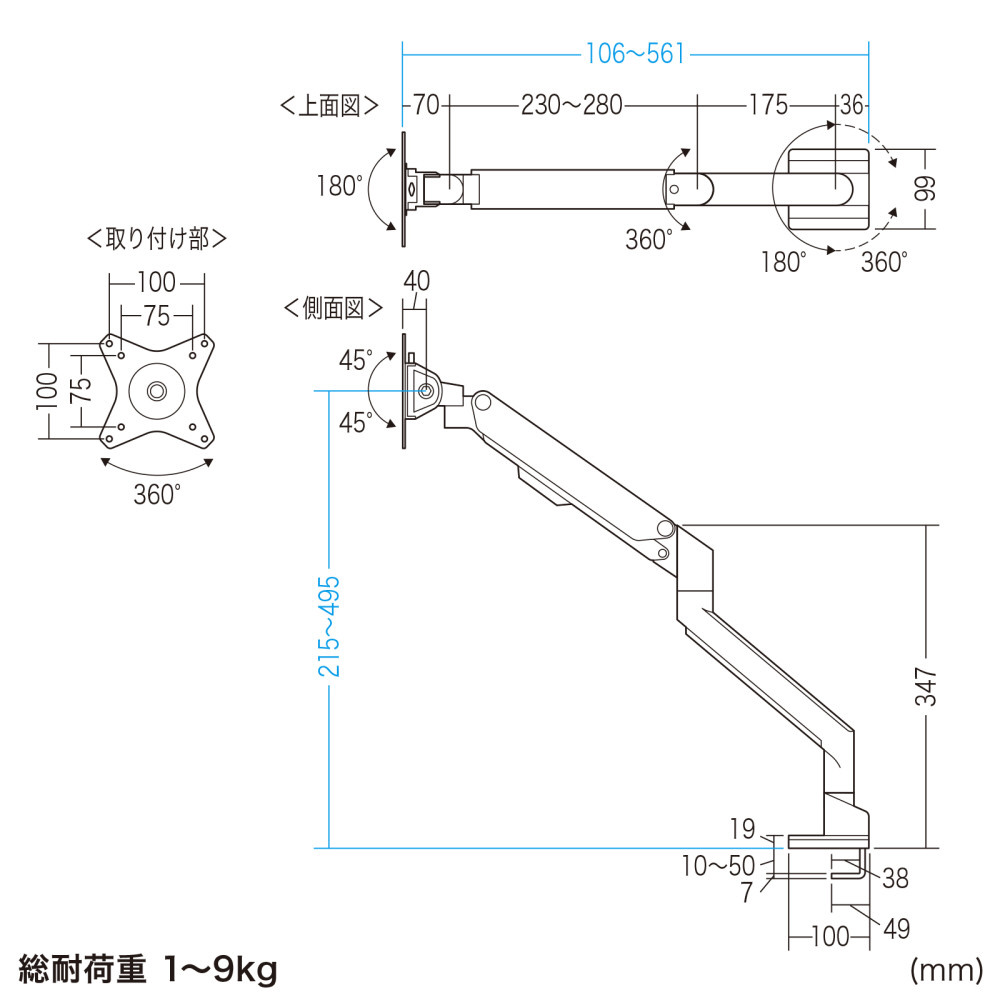 ■1〜9kgのモニターの取り付けが可能です。