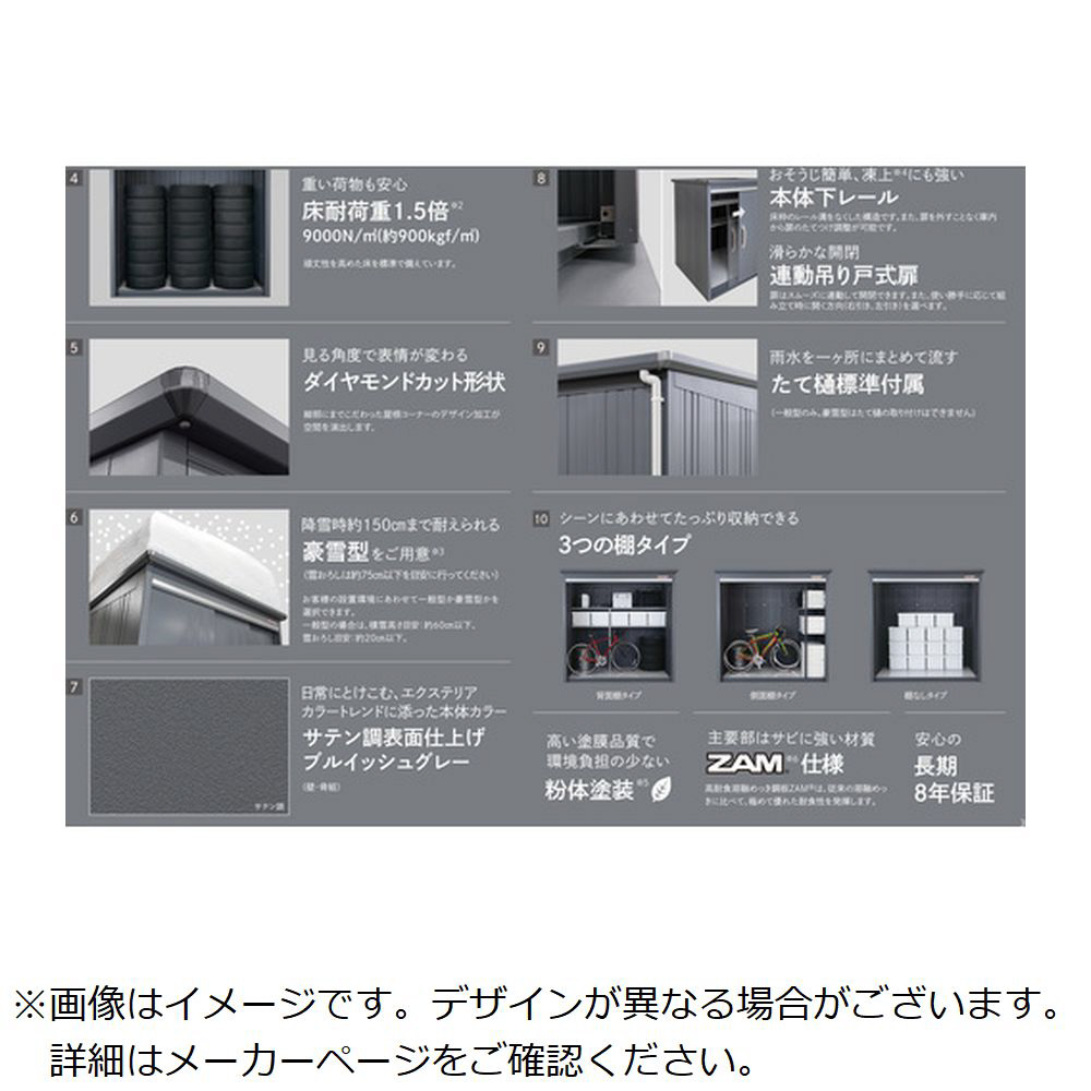 ・屋根板: 豪雪型・結露減少仕様 側面棚仕様