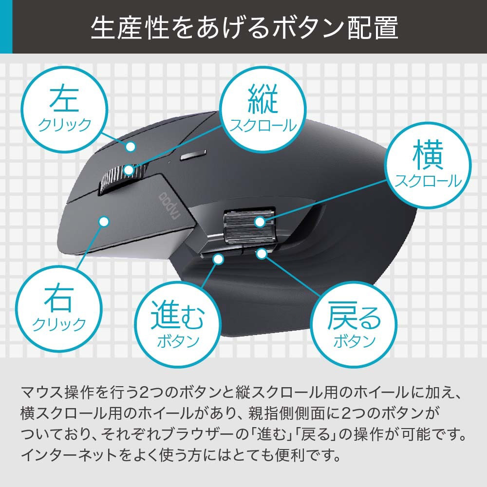 ■大型サイズの手になじむエルゴノミクスデザイン、サイドスクロールホイール搭載