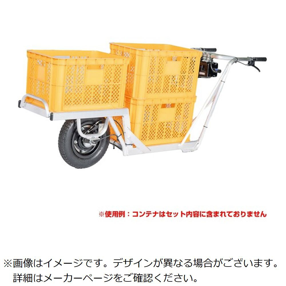 ■E−cat kit2 コンテナ用アルミ電動一輪車は果樹農家に人気のコンテナ用一輪車に「E-cat kit2」を取り付けた一体型の製品です。