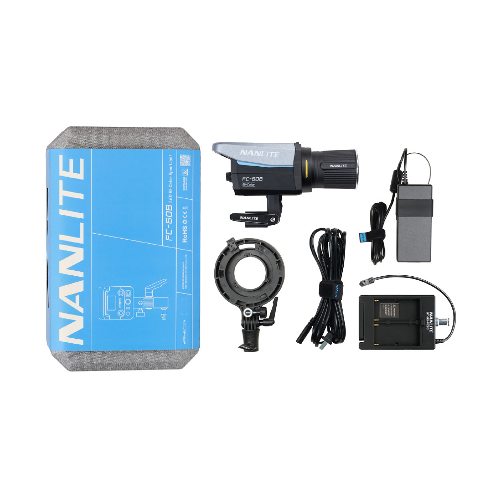 NANLITE FC-60B LED撮影用ライトには、コンパクトな革新的なFMマウントが採用されています。主に、FL-11フレネルレンズ、NANLITE PJ-FMM-19/36プロジェクションアタッチメント、NANLITE SB-FMM-60ソフトボックスなどの製品と互換性があり、自由自在に撮影シーンを作り上げることができます。さらにボーエンスアダプターが付属するため、さまざまなアクセサリーが装着できます。