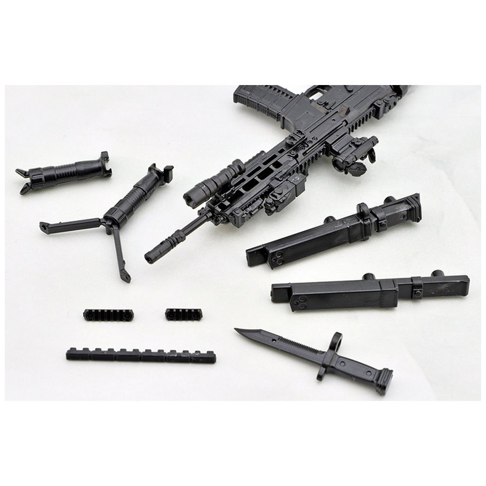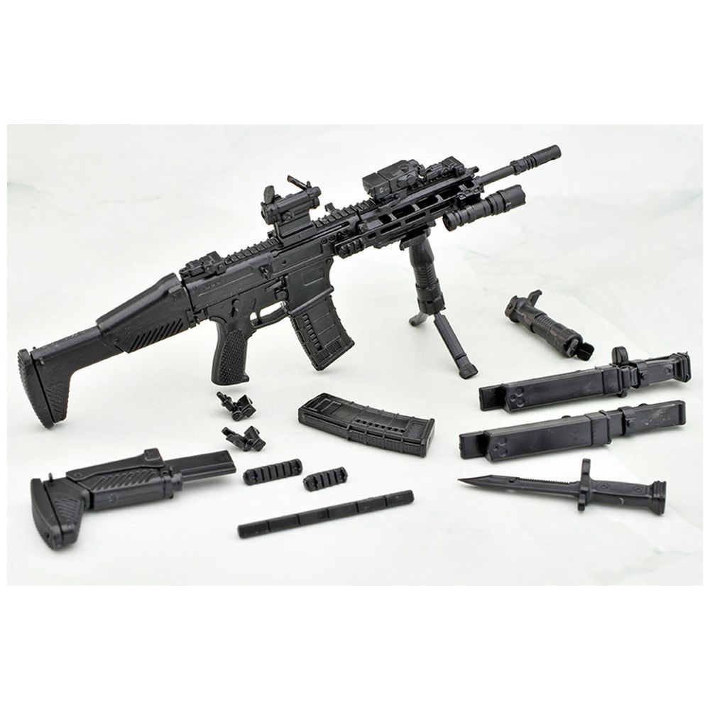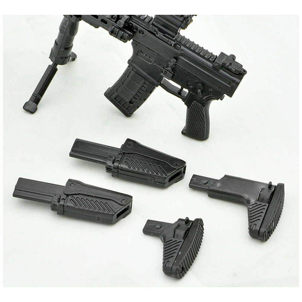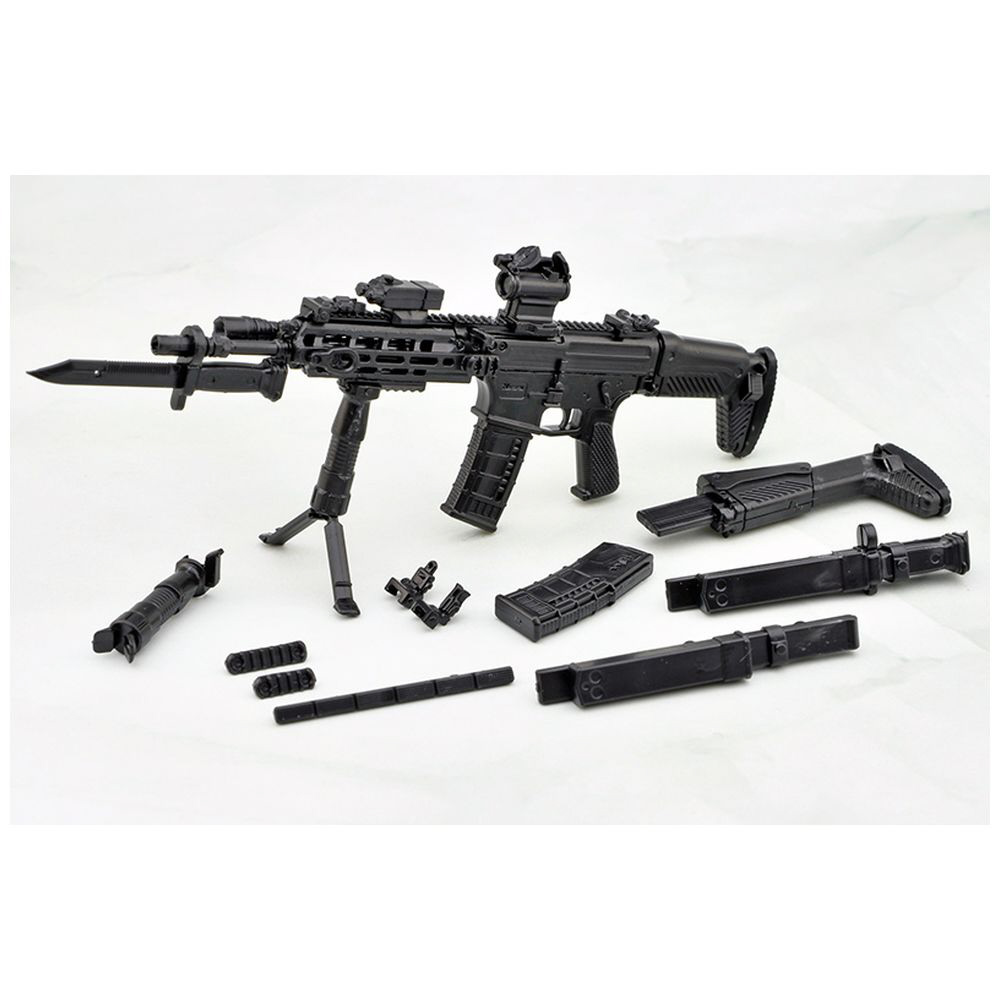 アルミ合金と強化樹脂の組み合せで強さと軽さを両立した本体部に、軽量ハンドガード、使用者の体格や装具に合わせて可変できる銃床を装備。