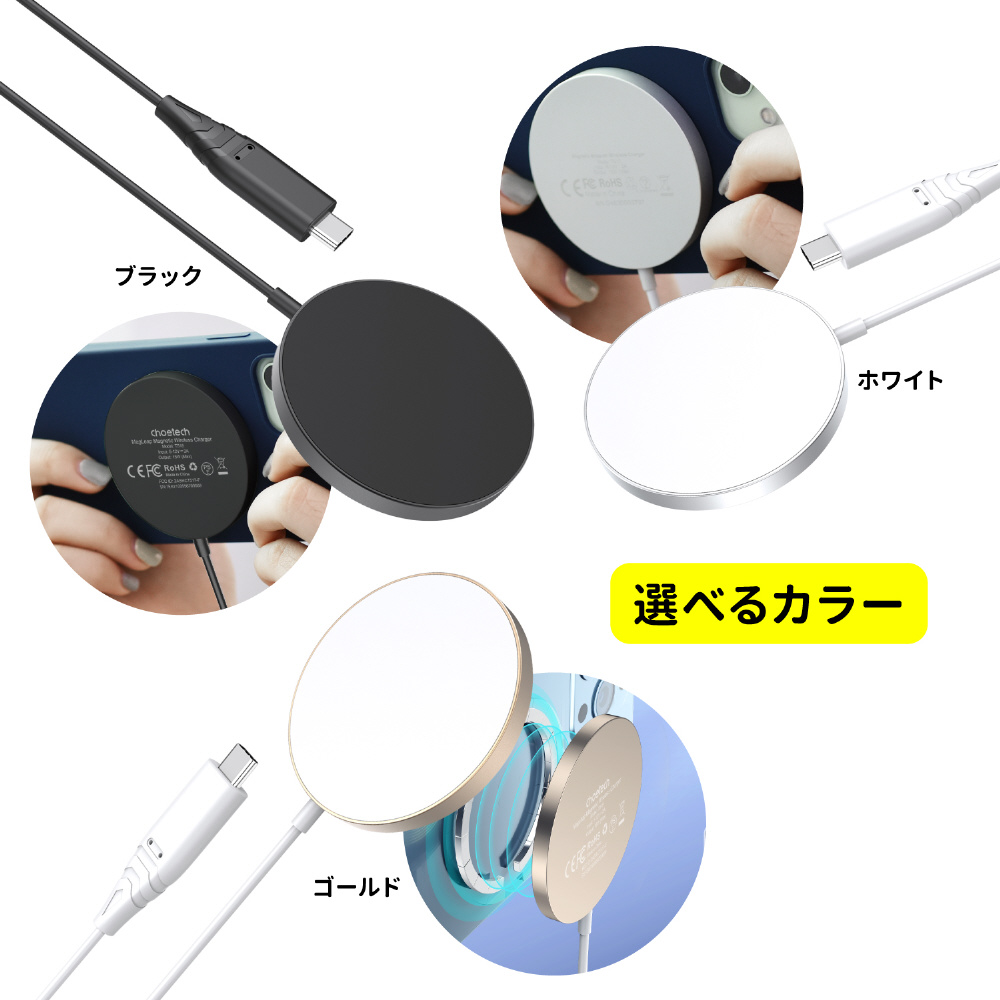 ワイヤレス充電器 置くだけ充電 磁気ワイヤレス充電器 マグネット式 無線充電器 急速充電器 軽量 超薄型 15W