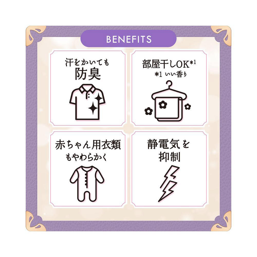 高級ホテルタオルのような、ふわふわシフォンにヨレ・毛玉も防ぐ*1汗をかいても防臭部屋干しOK*2赤ちゃん用衣類もやわらかく静電気を抑制約4ヶ月分^1。