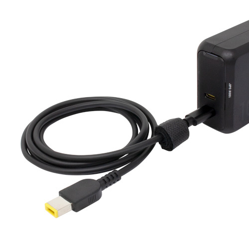 ■PD対応USB Type-C搭載ACアダプタで、角型充電端子を搭載するLenovo/NEC製ノートPCなどを充電できるケーブルです。