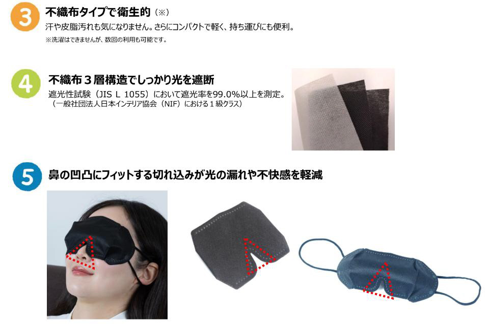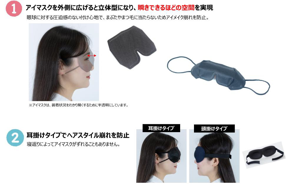 アイマスクは外部からの光を遮断して瞳への刺激をなくすことで、睡眠の質を高める効果があります。