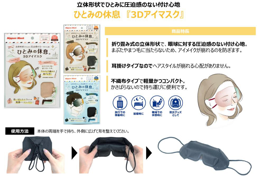 最近では、飛行機やバスでの長距離移動時の使用以外にも、不眠症対策や災害時の避難所グッズとしての