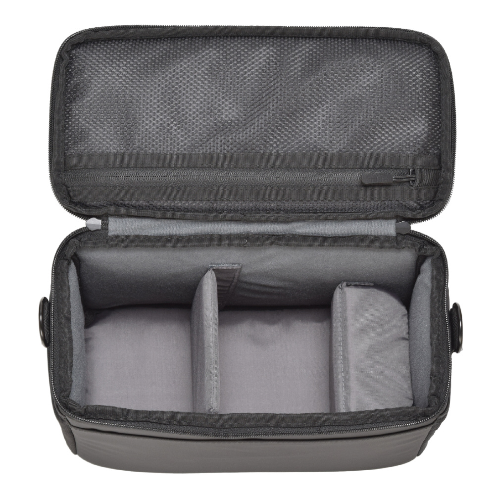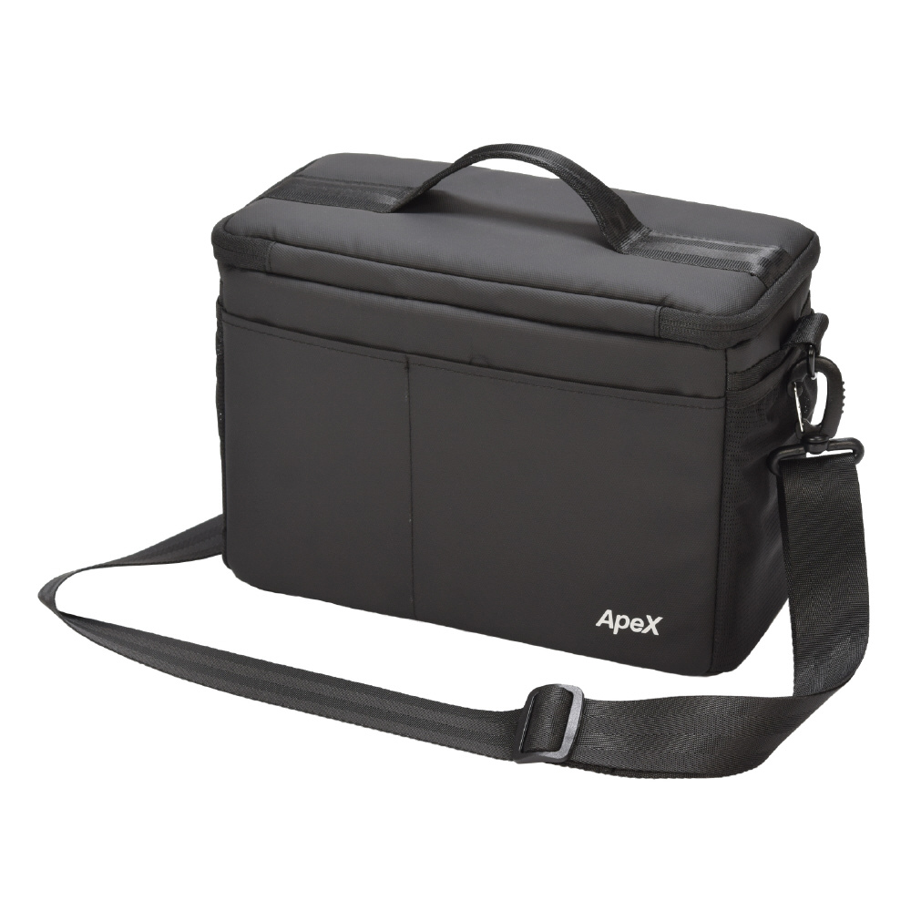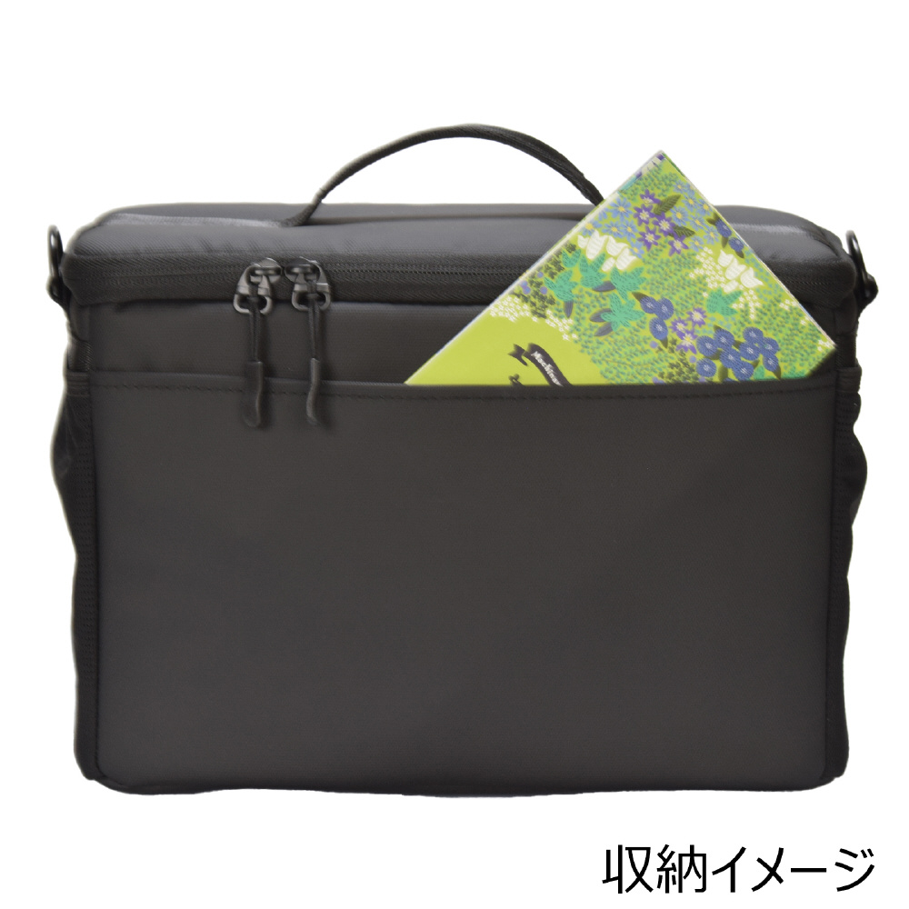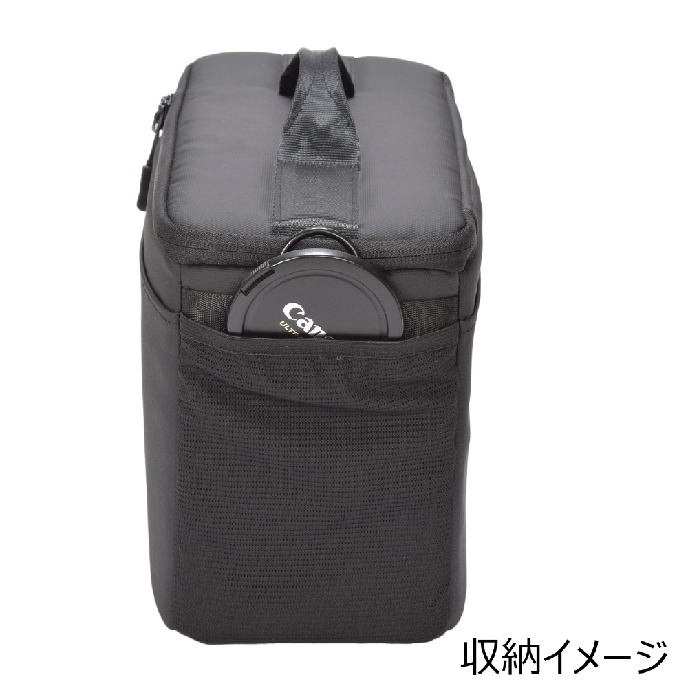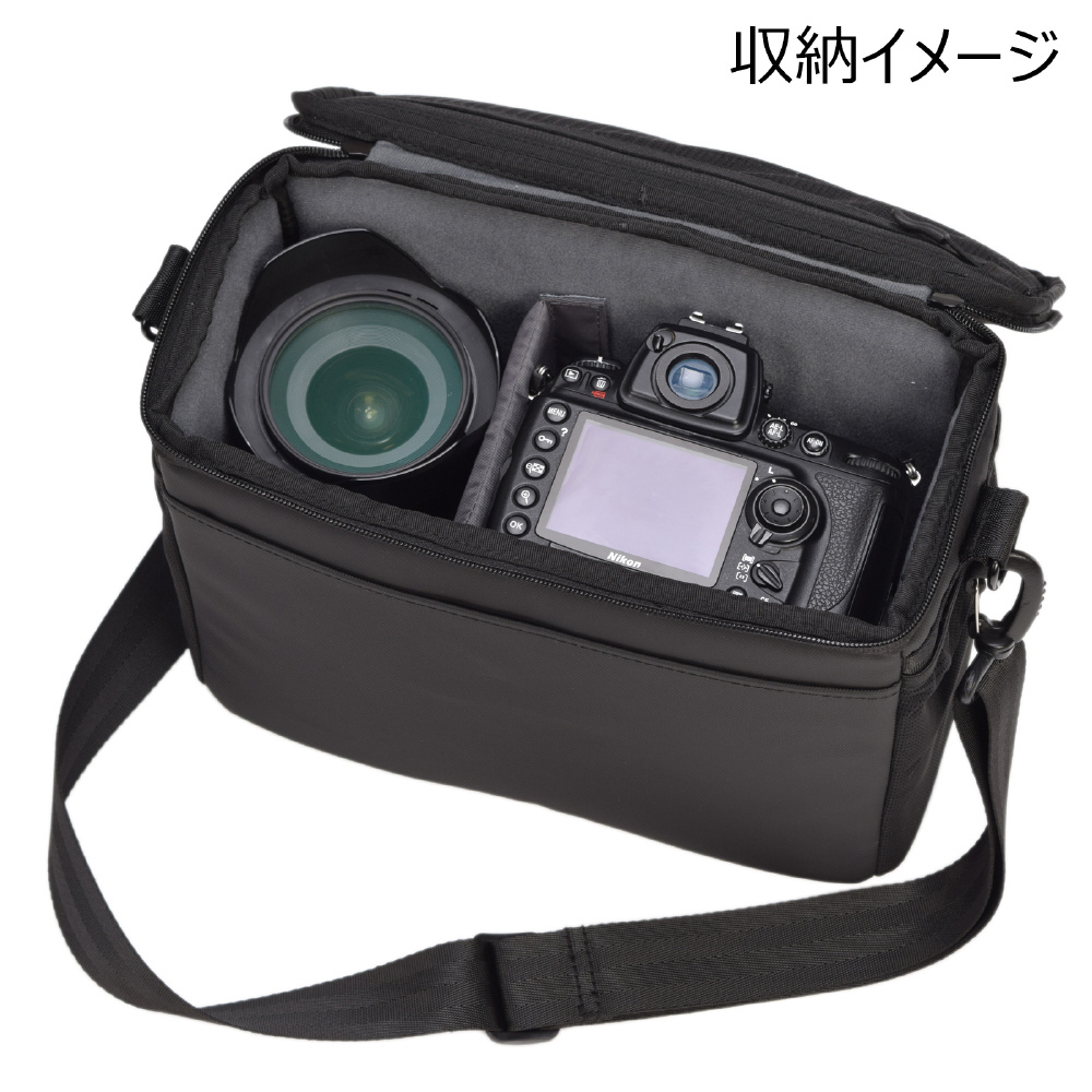 インナーボックスとして使っても便利なショルダータイプのカメラバッグ。中型ミラーレスカメラや、一眼レフカメラに最適。奥行は大口径花型レンズフードに対応した120mm幅、大口径広角ズームレンズも楽に収納。インナーボックスとしてバックパックやキャリーケースに入れて移動し、山や旅先など目的地に到着したらショルダーバッグとして持ち出せます。適度なクッション性で移動中も大切な機材をしっかり保護します。
