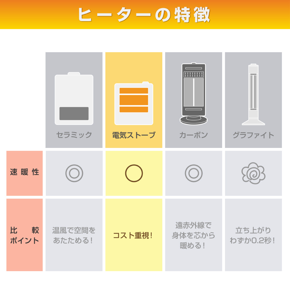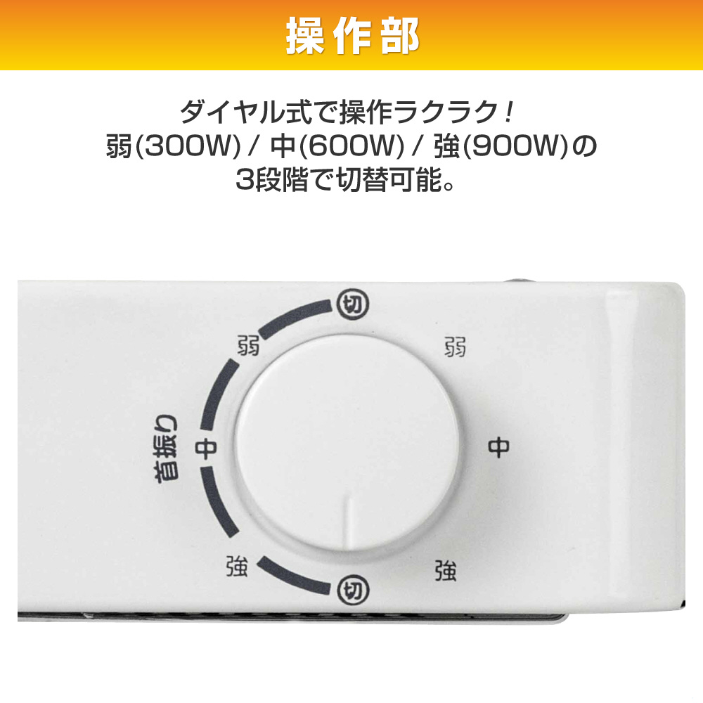 電気ストーブ 自動首振り機能 転倒オフ機能 YAMAZEN DS-M094(W) [首振り機能]