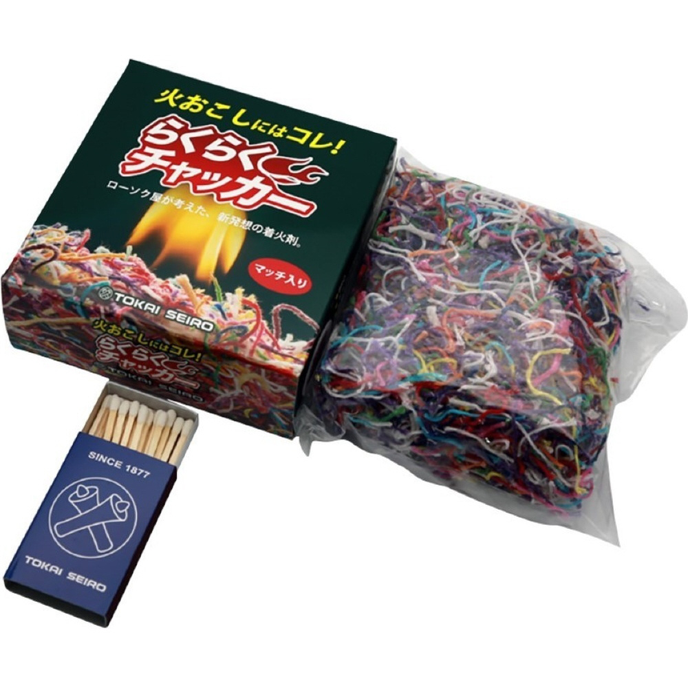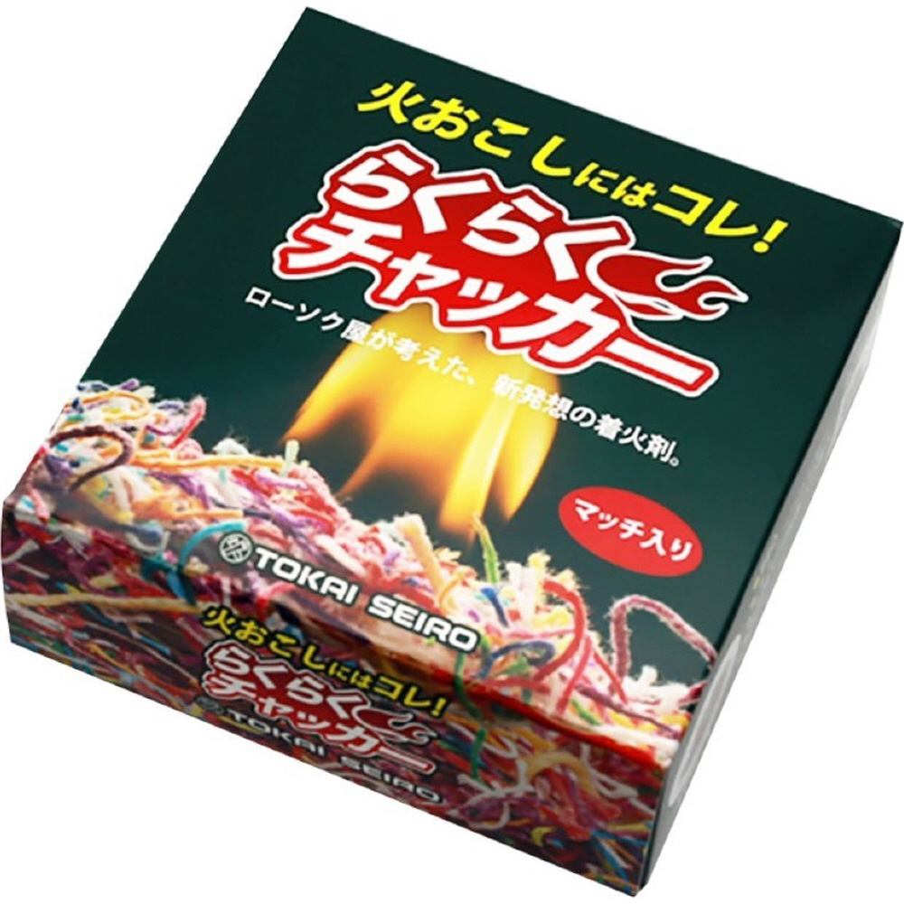 らくらくチャッカーは、様々な太さの綿糸に、高純度のロウをたっぷり染み込ませた着火剤。非常に着火しやすく、分量や形状を自由に変えられるので、炎の大きさや燃焼時間の調節が簡単にできます。