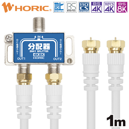 アンテナ2分配器 全端子電流通過型 ケーブル2本付き(S-4C-FB) 1m HAT-2SP340WH