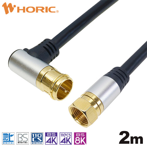 2m アンテナケーブル アルミヘッド L字差込式/ネジ式コネクタ ブラック AC20-388BK