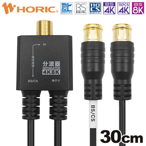 アンテナ分波器 極細ケーブル一体型 30cm 差込式コネクタ ブラック AE-644BK