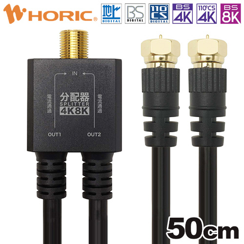 アンテナ分配器 ケーブル一体型 50cm ネジ式コネクタ ブラック AP-720BB