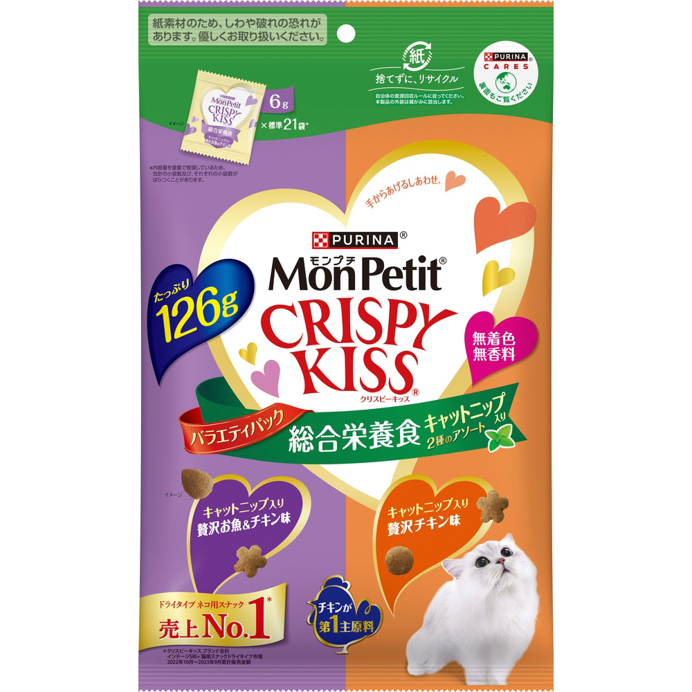 モンプチ クリスピーキッス バラエティパック 総合栄養食キャットニップ入り 2種のアソート 126g