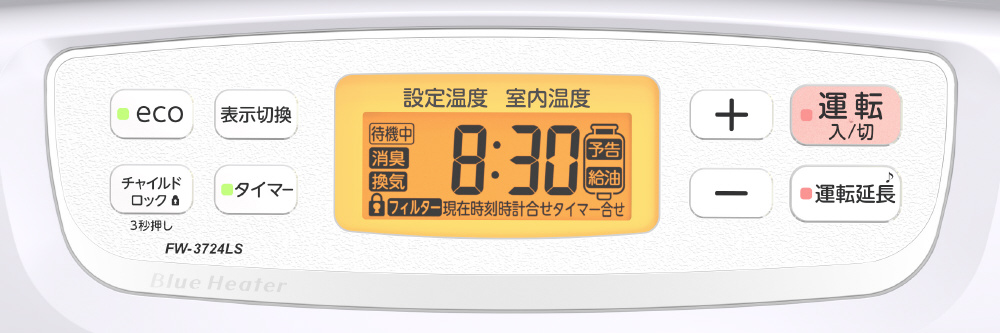 設定温度プラス3℃で自動消火、マイナス1℃で自動点火。快適温度を保ちながら灯油の消費を上手に節約します。
