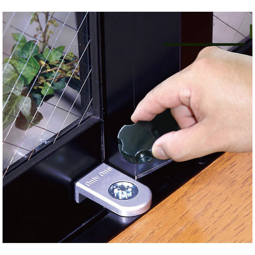 ■サッシに置き、つまんで回すだけでロックできる補助錠です。
