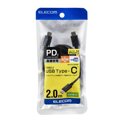 最大60WのUSB Power Deliveryに対応し、スマートフォン・タブレットを高速充電。USB Type-C(TM)ポートを搭載した機器同士の接続ができるUSB2.0ケーブルです。