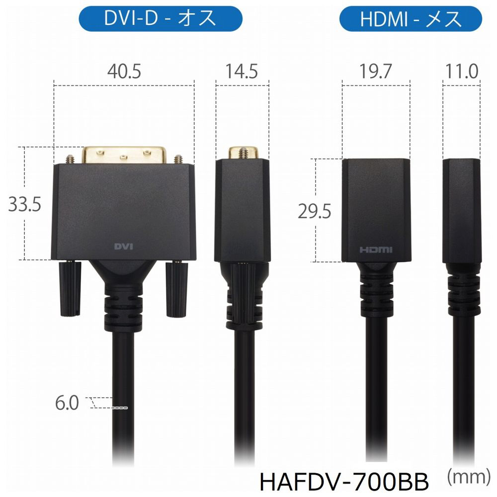 映像変換アダプタ [DVI オス→メス HDMI] ブラック HAFDV-700BB [HDMI⇔DVI /0.15m]