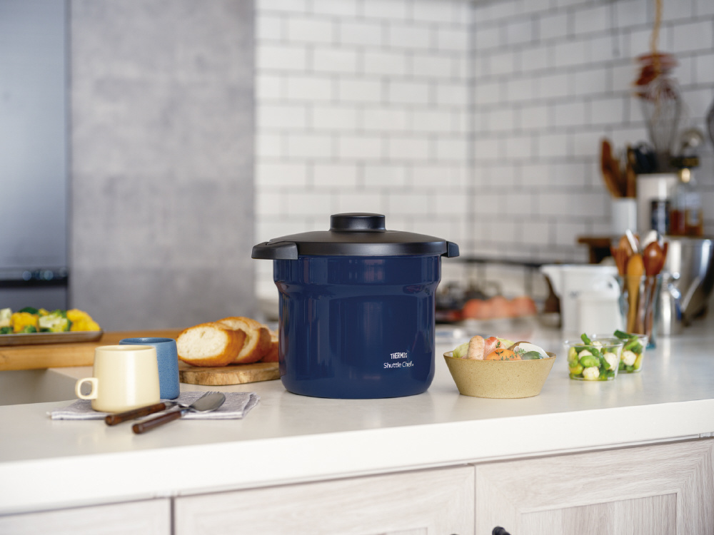 サーモス シャトルシェフは、セラミックコーティングで新登場。高い硬度と傷つきにくさが特徴の内鍋を使用し、火からおろして余熱で調理できます。電気代・ガス代の節約にもなります。