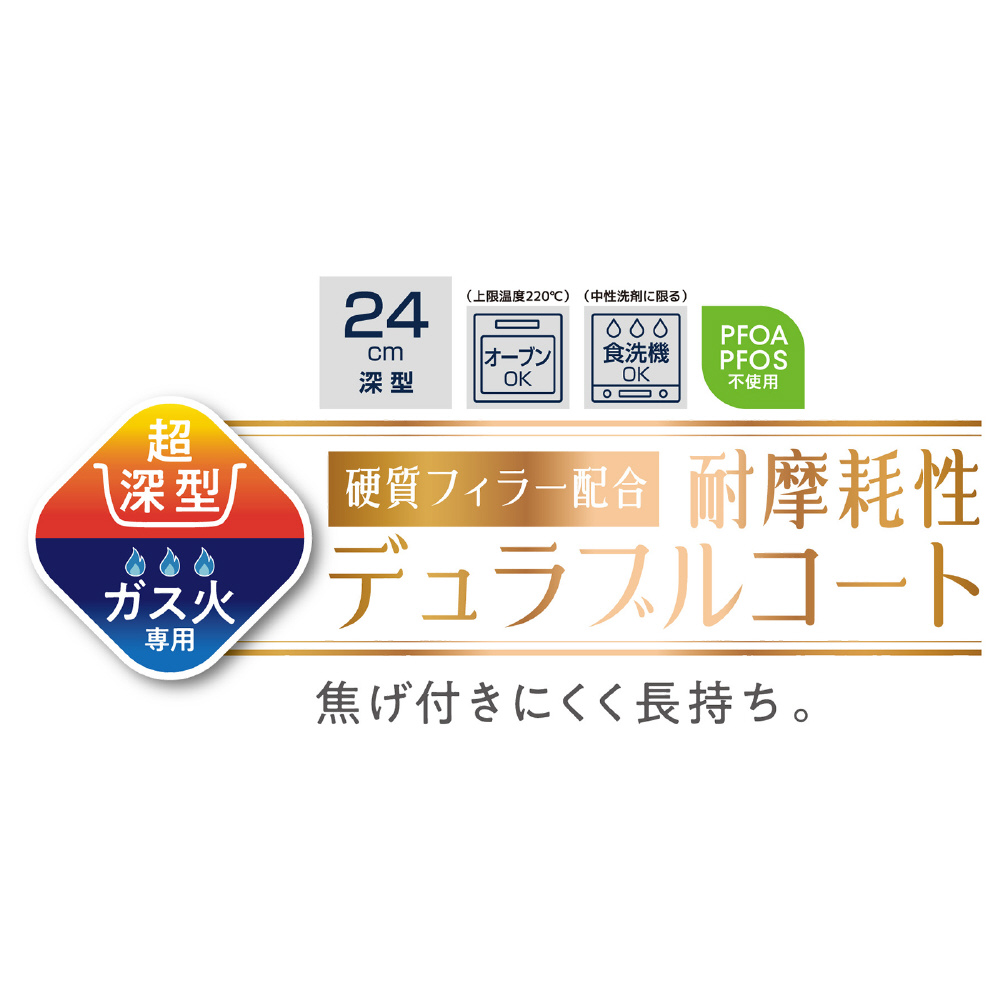 ガス火専用。耐摩耗性デュラブルコート