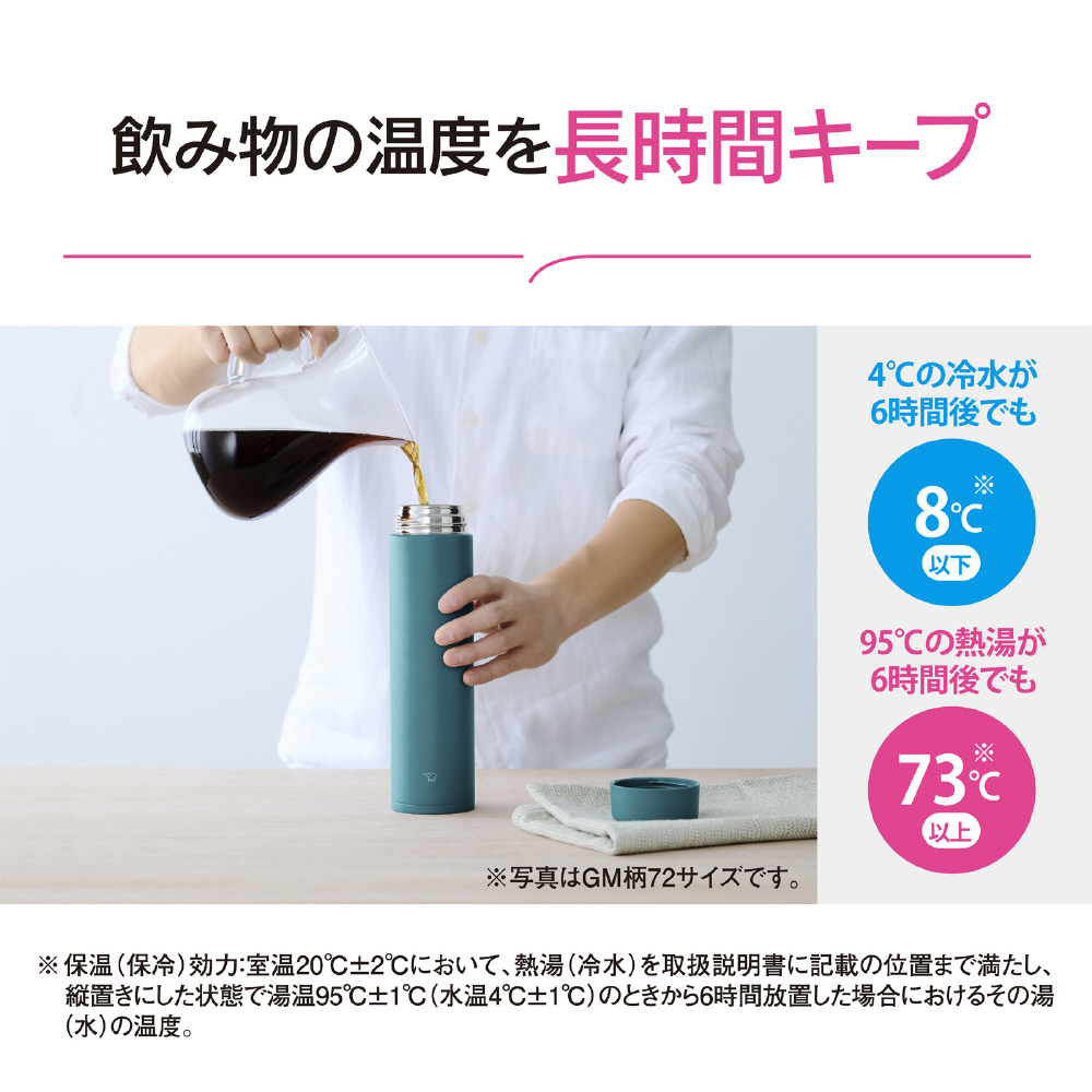 ・ステンレス真空2重のまほうびんだから飲み物の温度を長時間キープします。