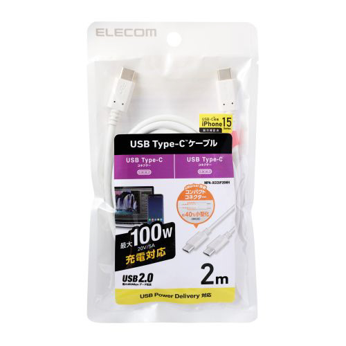 タイプC ケーブル USB Type-C to Type-C 2m PD 100W 急速充電 コンパクトコネクタ 【 iPhone MacBook iPad 等 Type C 機器対応 】 転送 充電ケーブル ホワイト