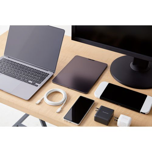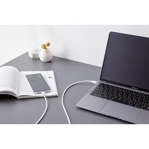 最大100WのUSB Power Deliveryに対応したUSB2.0 Type-C(TM)ケーブルです。従来品より約40%小型化(当社比)したコンパクトコネクターと、約10%スリム化(当社比)したケーブルによりスッキリ配線できます。
