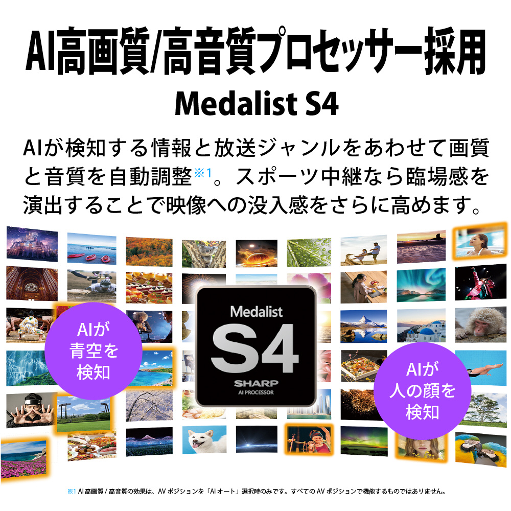 AI高画質・高音質プロセッサー採用の画像処理エンジン「Medalist S4」が、画質と音質を自動調整
