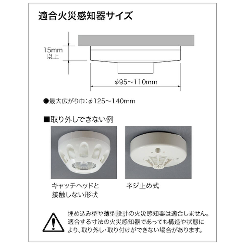 ・適合火災感知器サイズ: φ95-110mm、高さ15mm以上