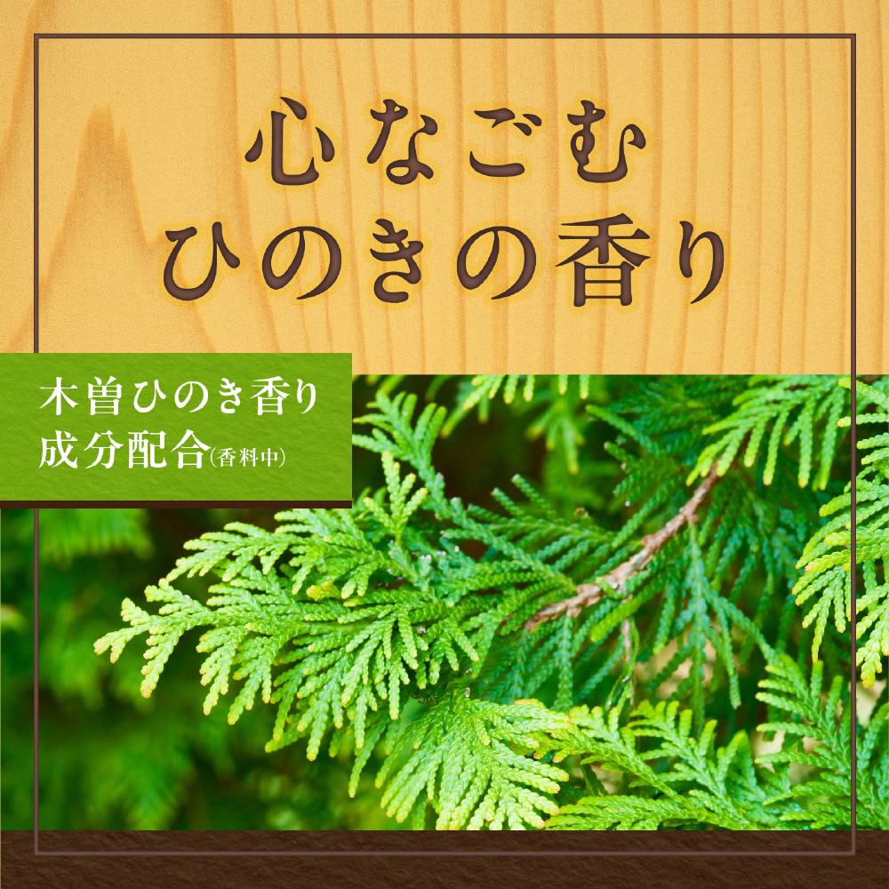 ●木曽ひのき香り成分配合(香料中): 木曽産のひのきの香りを分析し、再現した香り成分を配合しています。