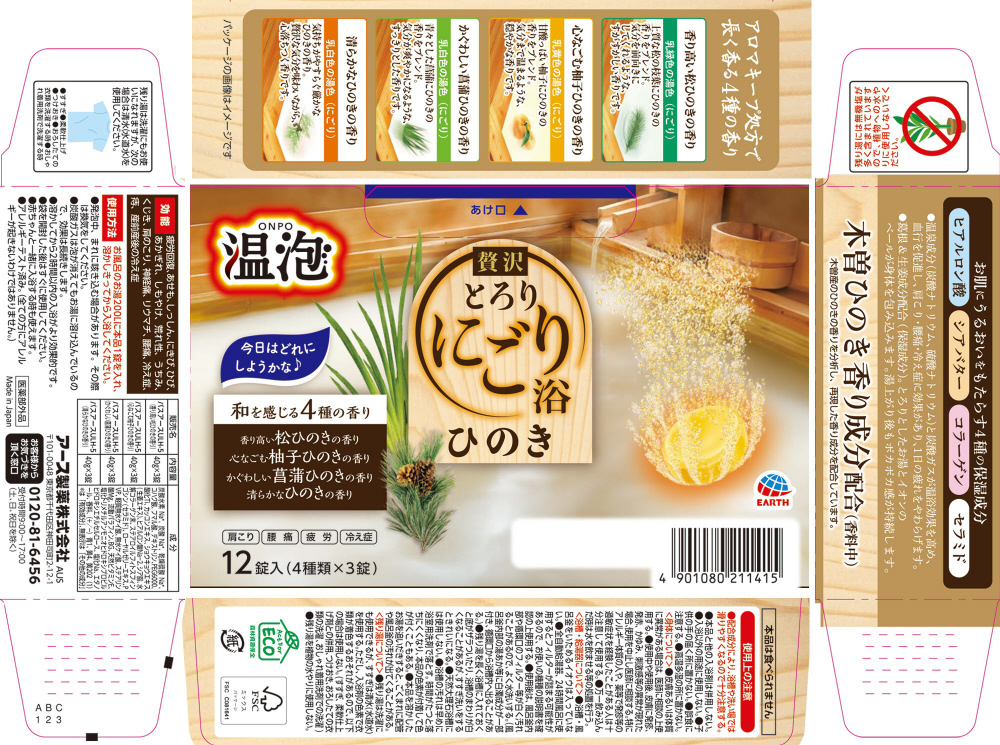 【効能】疲労回復、あせも、しっしん、にきび、ひび、あかぎれ、しもやけ、荒れ性、うちみ、くじき、肩のこり、神経痛、リウマチ、腰痛、冷え症、痔、産前産後の冷え症