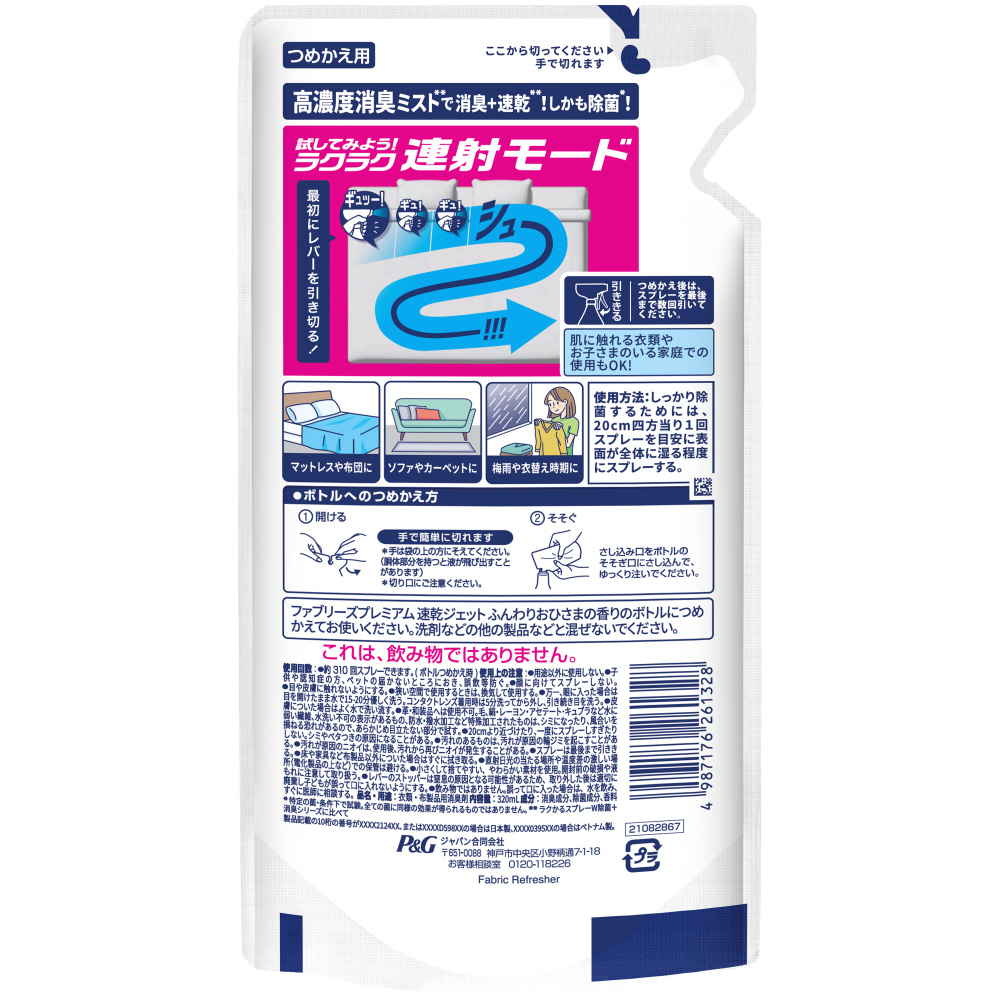 ファブリーズ速乾ジェット ふんわりおひさまの香り 詰替用 320mL ふんわりおひさまの香り