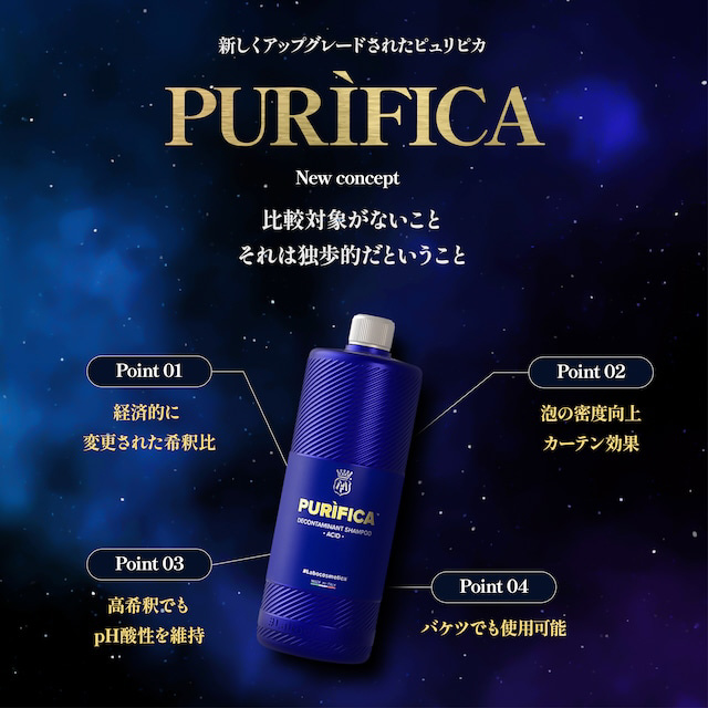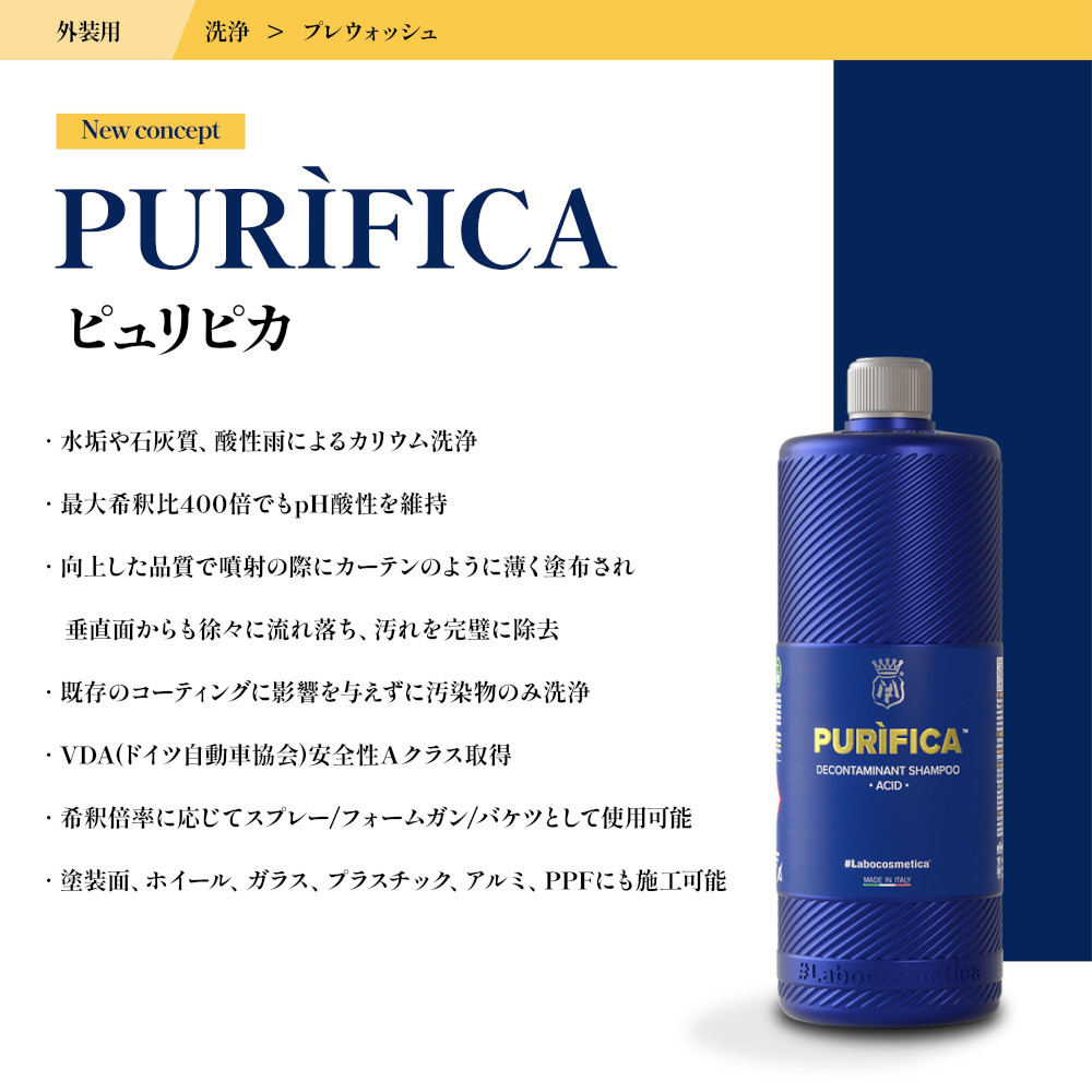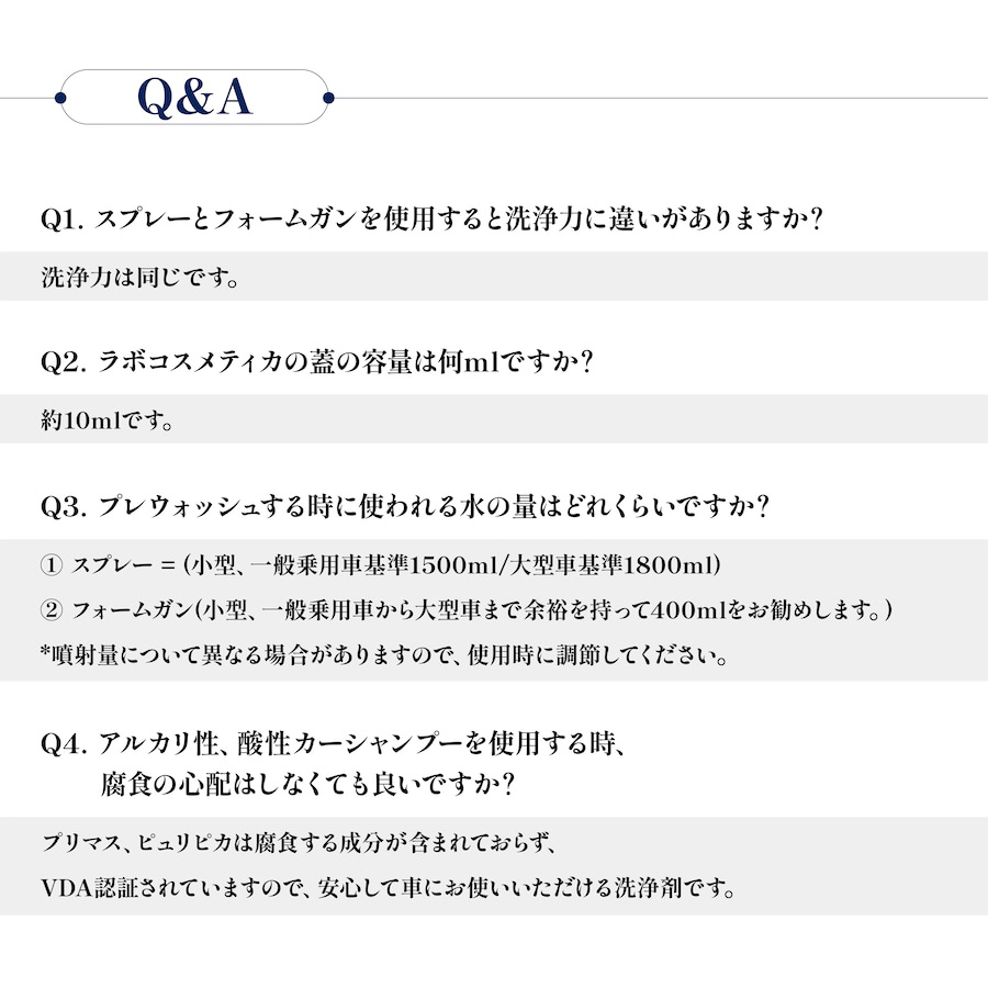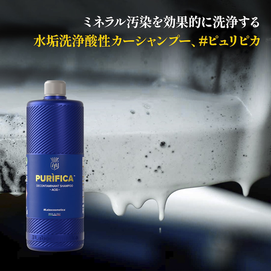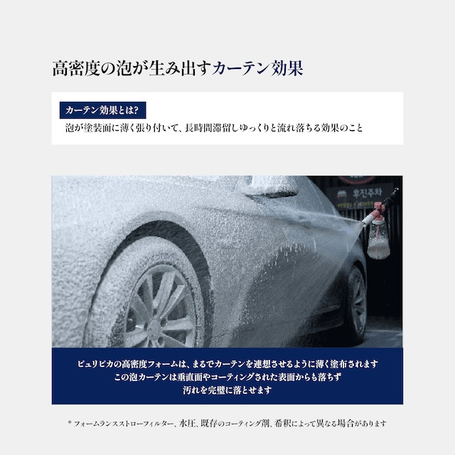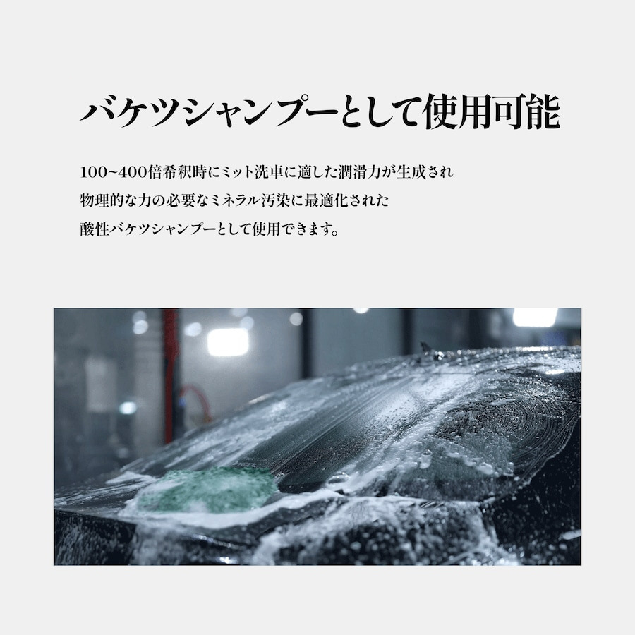 酸性のプレウォッシュ剤。洗車前に酸性の泡をかける事により、無機質汚れを分解します。また、コンタクトウォッシュにも使えます。