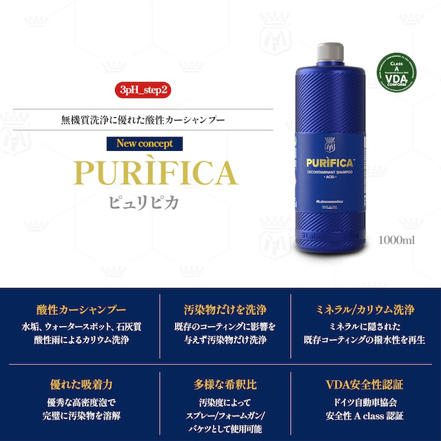 ディテール分野で初の「VDA認証」を与えられたプレウォッシュ剤です。VDA認証は、ドイツの自動車協会による認証で、最もデリケートな自動車やバイクなどに使用できるケミカルであることを証明する認定書です。