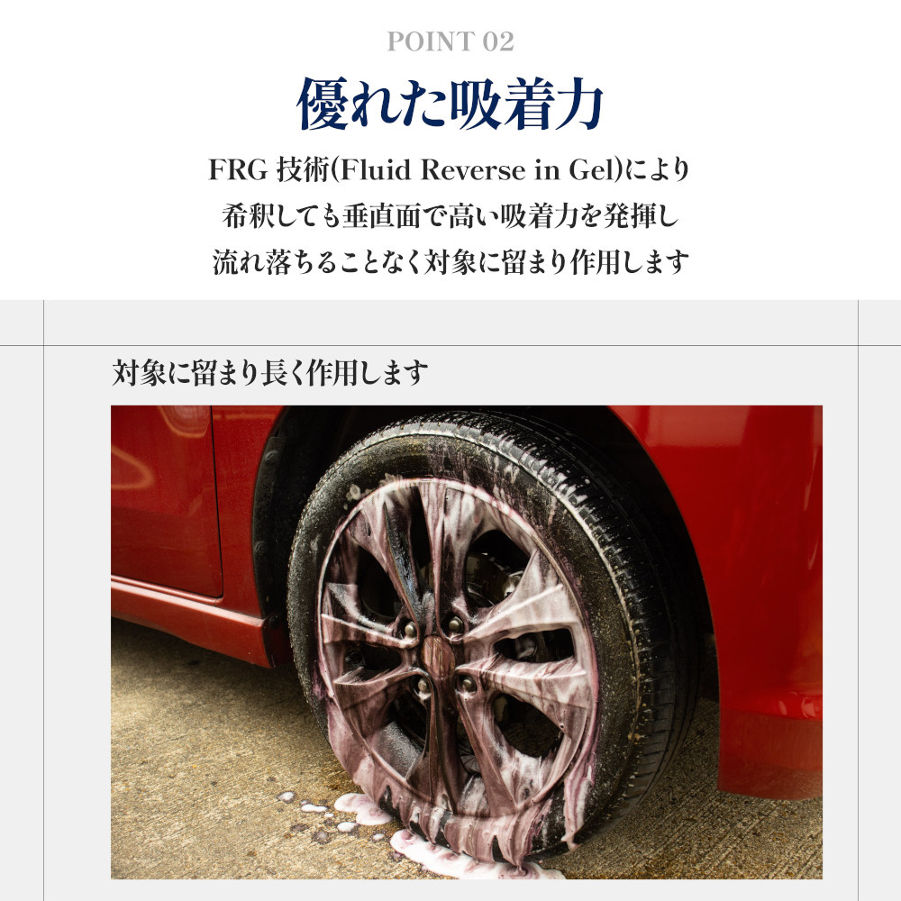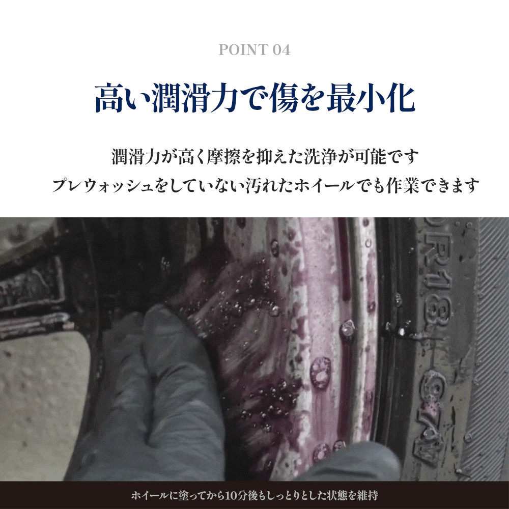 高い潤滑力でキズを最小限に抑えます。プレウォッシュをしていない汚れたホイールでも作業できます。