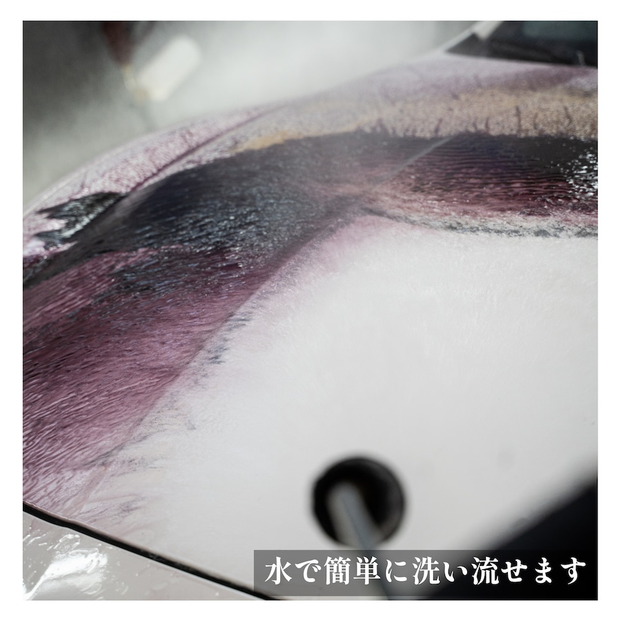 1.あらかじめ車両を洗浄しホコリや汚れを落としてください。汚染度に応じた希釈率の希釈液を作り、スプレイヤーにて施工表面に塗布してください。