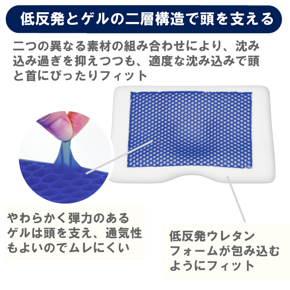 低反発ウレタンフォームと柔らかく弾力のある3D構造ゲルの2つの素材で浮いているような寝心地。