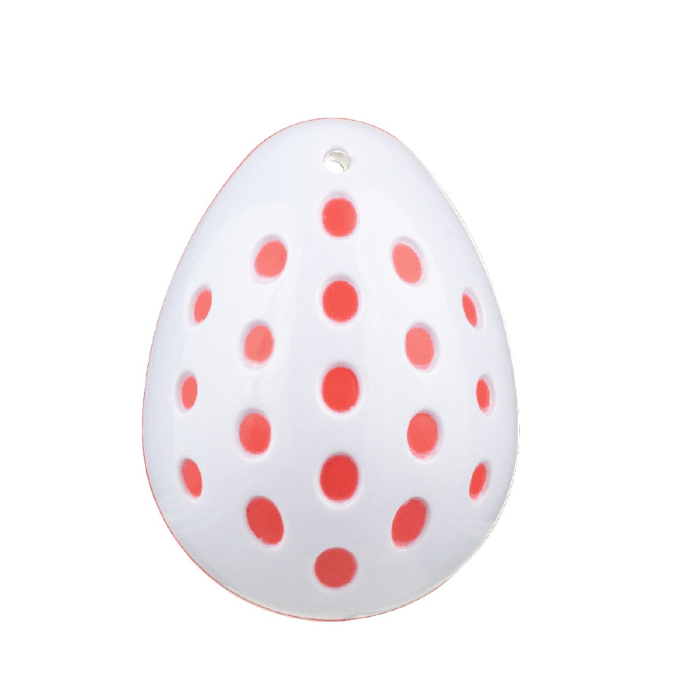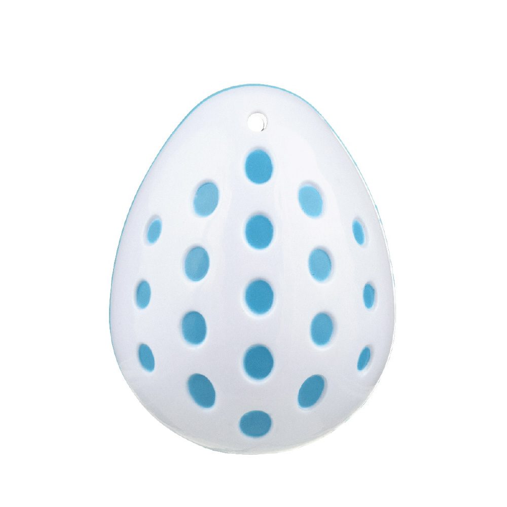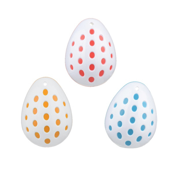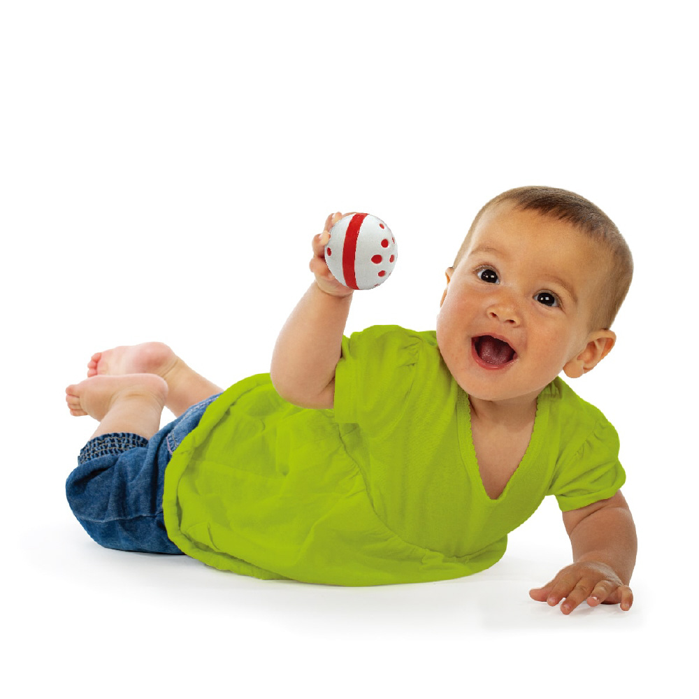 小さな赤ちゃんが認識しやすい色鮮やかなタマゴ型のマラカスです。<BR>表面の水玉模様のへこみは、握った時に触感の刺激になります。少し揺らしただけでもやさしいビーズの音がします。