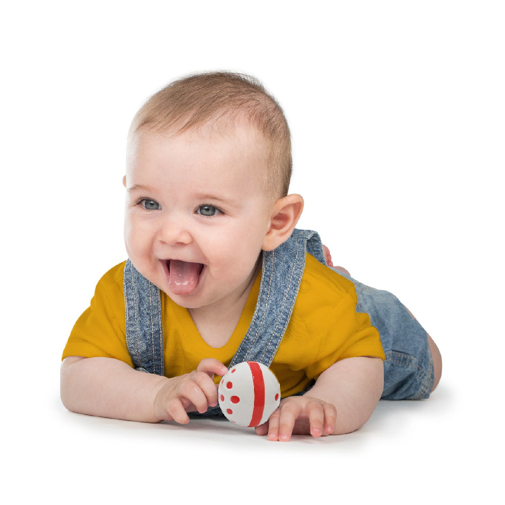 2個用意して、左右の手に1個ずつ握りリズム遊びもおすすめ。右・左と交互に動かすことは、将来的に日常動作を習得する下地になります。
