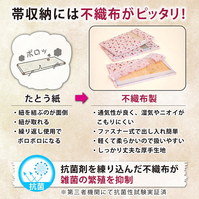 湿気やにおいのこもりにくい不織布製の帯収納袋